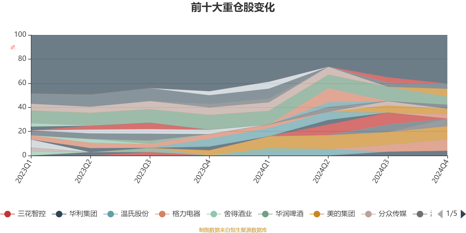 该基金持股集中度较高。截至2024年末,基金十大重仓股分别是美的集团、格力电器、贵州茅台、裕元集团、泡泡玛特、美团-W、五粮液、华利集团、人福医药、腾讯控股。