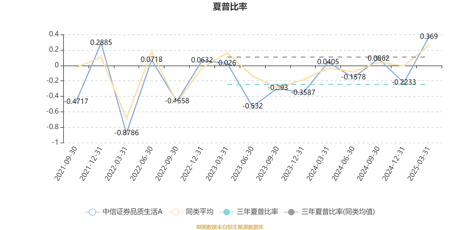 截至3月31日,基金近三年夏普比率为-0.2459,位于同类可比基金439/488。