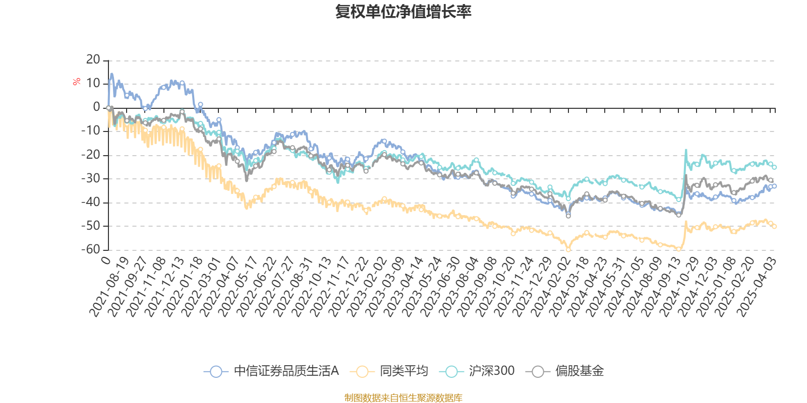 截至4月3日,中信证券品质生活A近三个月复权单位净值增长率为8.73%,位于同类可比基金198/646;近半年复权单位净值增长率为2.95%,位于同类可比基金266/646;近一年复权单位净值增长率为7.03%,位于同类可比基金378/639;近三年复权单位净值增长率为-22.45%,位于同类可比基金353/488。